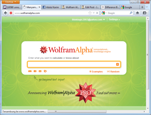 1. WolframAlpha memang sangat canggih. Berguna bagi pelajar, pengajar, riset, dan masyarakat umum yang ingin mencari ilmu pengetahuan. Saya akan menyarankan penggunaannya di Forum Pekerjaan Rumah.