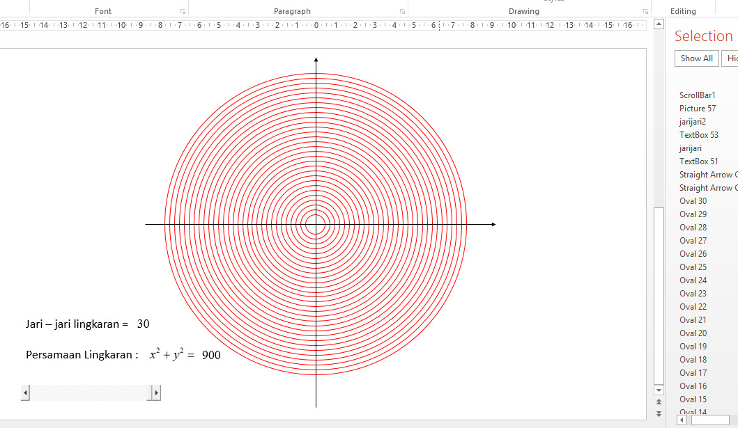 Siapkan shapes (textbox) dan sebuah scrollbar seperti pada gambar di atas. Kemudian pilih View Code pada kelompok Controls – tab Developer ketikkan script berikut :