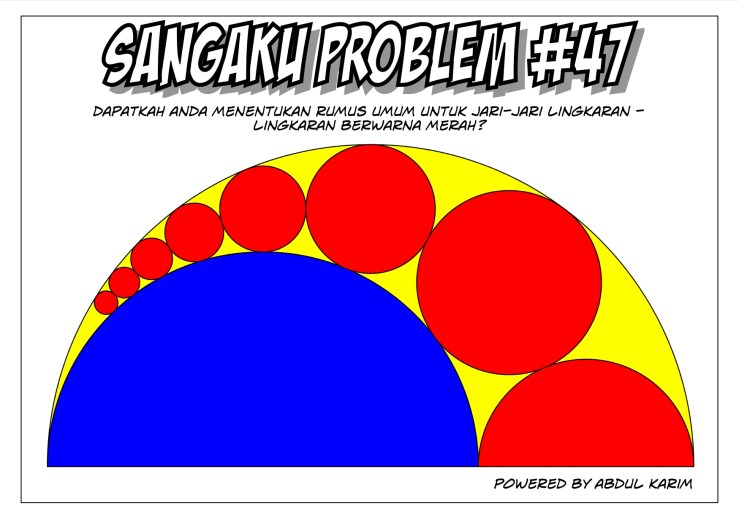 Seperti kita ketahui, bahwa pikiran akan menjadi lebih baik jika kita latih dan gunakan. Jepang pada abad 16 mempunyai tradisi unik yang cerdas di masyarakatnya, yaitu dengan menggantungkan “tablet sangaku” di kuil-kuil tempat peribadatannya, sehingga masyarakat umum yang datang ke kuil tertantang untuk menyelesaikan masalah yang ada pada tablet sangaku. Insya Allah saya akan menggunakan media “kaos” untuk menyajikan masalah-masalah matematika yang menantang, semoga masyarakat dapat mengenal matematika dan tertarik untuk melatih pikirannya dengan menyelesaikan masalah-masalah matematika yang saya sajikan pada media kaos. … Segera beredar!
