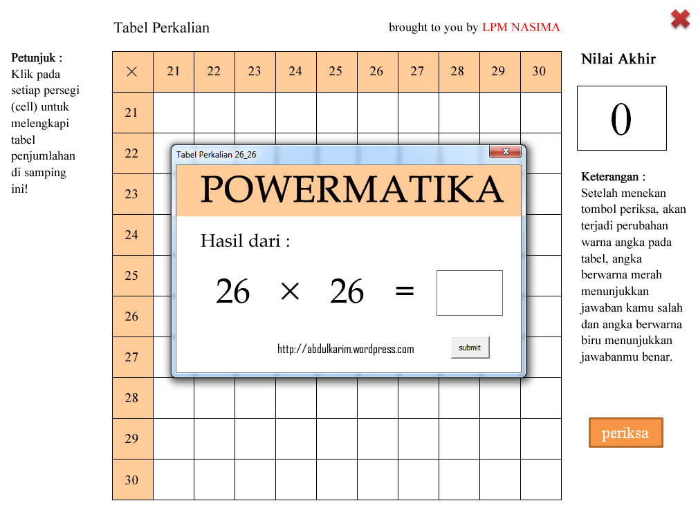 Tabel Perkalian bilangan dari 1 sampai dengan 10