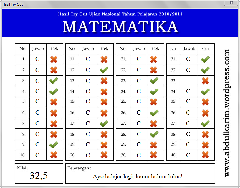 Pada posting ini saya upload soal interaktif dengan MS Word. Jumlah total soal yang disajikan 525 buah yang dibagi ke dalam 21 bab, per bab 25 soal.